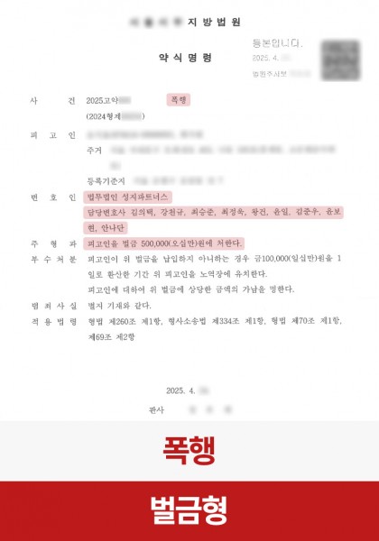 [폭행] 술자리에서 발생한 폭행, 벌금 50만 원 약식명령