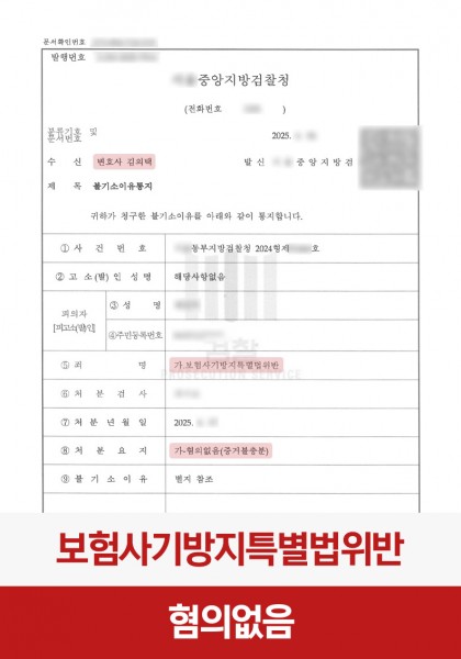 보험사기방지특별법 위반, 증거불충분으로 혐의 없음