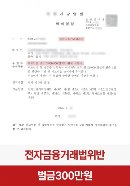 [전자금융거래법위반] 접근매체 대여, 벌금 300만원 약식명령