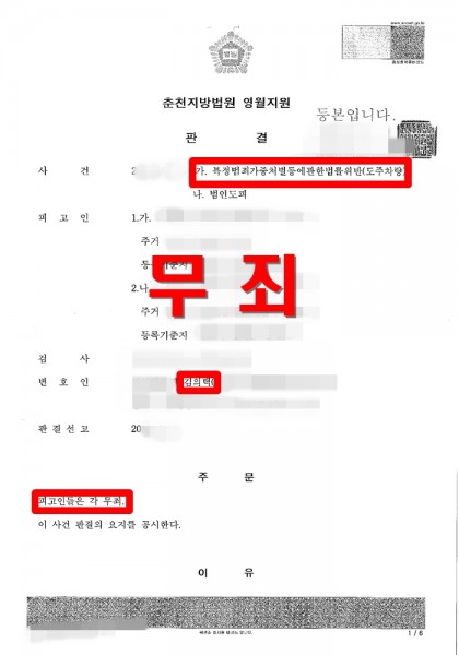 [무죄] 교통사고 이후 운전자를 바꾼 특가도주 뺑소니 사건에 대하여 무죄…