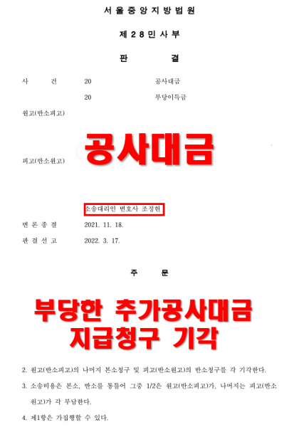 [민사][공사대금] 인테리어 공사업체의 부당한 추가공사대금 지급 청구를 …