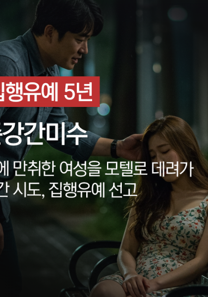 [준강간미수] 술에 만취한 여성을 모텔로 데려가 강간 시도, 집행유예 선…