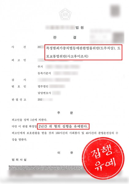 [도주치상,사고후미조치] 교통사고 후 음주 사실을 숨기려고 도주하여 기소…