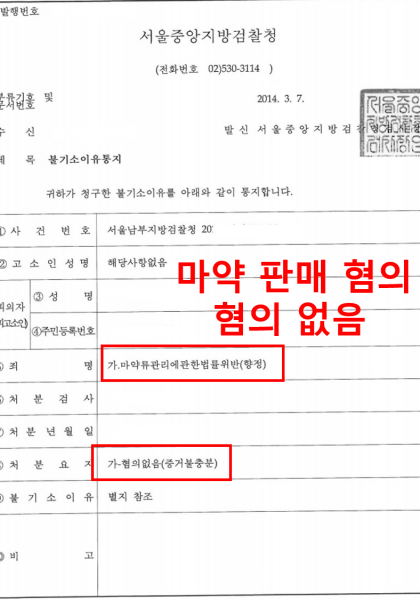 [마약류관리법위반(향정)][불기소결정] 마약판매 무혐의