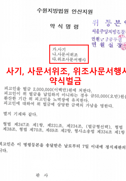 [사문서위조][위조사문서행사][사기][약식 벌금]