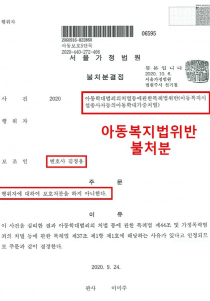 [아동학대범죄처벌등에관한특례법위반][아동보호사건송치] 아동복지법위반 불처…