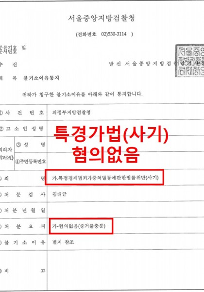 #특경법위반(사기) #무혐의 # 불기소결정 1 기초사항의 뢰 인 : 40대 남성혐의사..
