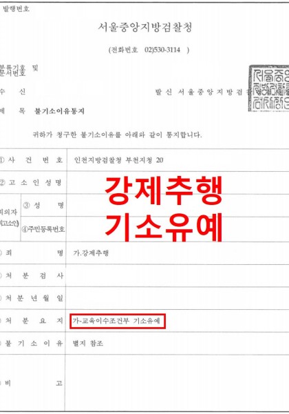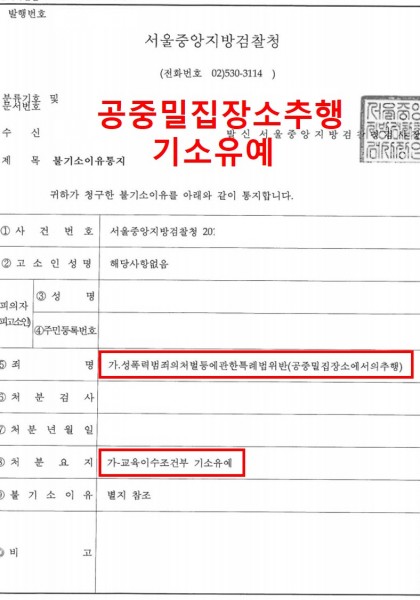 [강제추행] [기소유예][불기소결정] 강제추행 교육이수조건부 기소유예