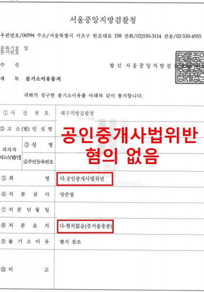 #공인중개사법위반 #혐의없음 #불기소결정 1 기초사항의 뢰 인 : 50대 ..