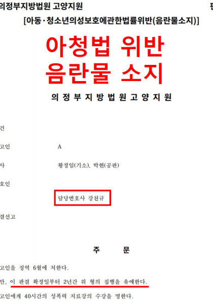 [형사][아청법위반(음란물소지)][집행유예] 아동·청소년의성보호에관한법률…