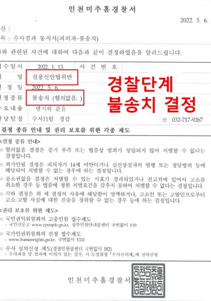 [실용신안법위반][혐의없음][불송치결정] 경찰단계에서 불송치 결정