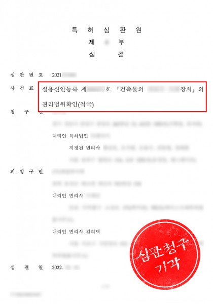 기존에 등록된 특허를 침해하였다며 권리확인 청구를 받은 사례