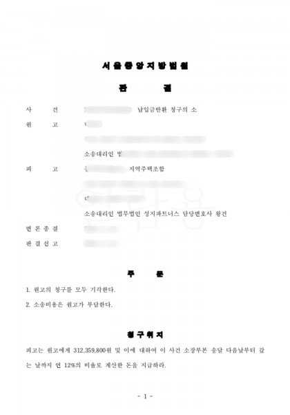 의뢰인 기초사항기초사항 : 조합사건명 : 납입금 반환 본 사건의 개요의뢰인은 주택 건..