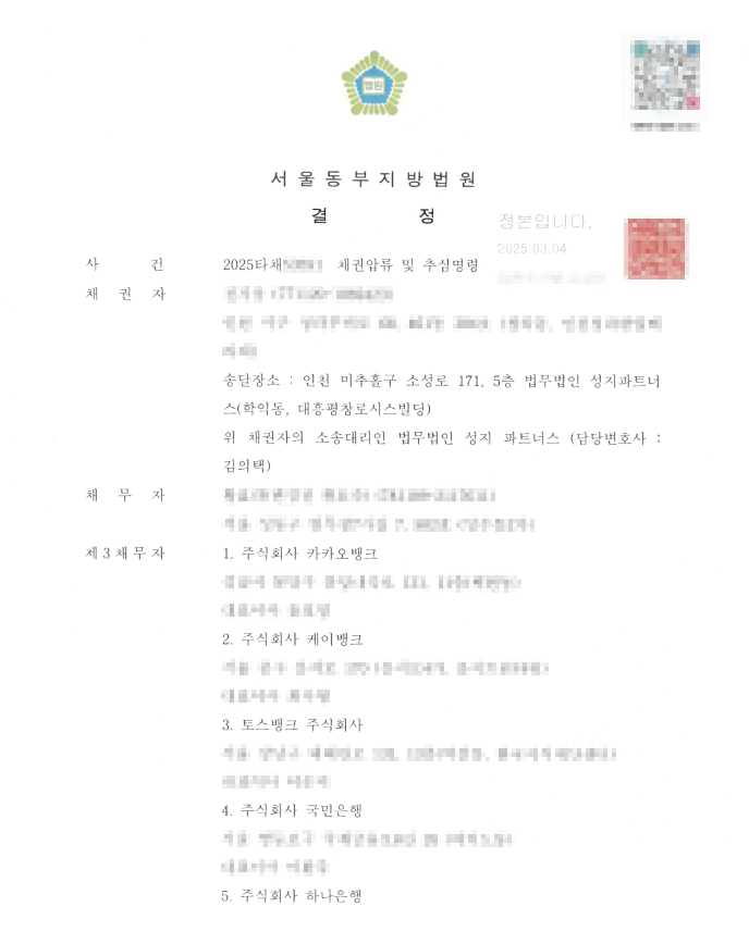 민사 [채권압류 및 추심명령] 채권압류 및 추심명령 성공사례