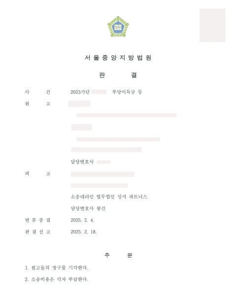 부동산·건설 [부당이득금] 부당이득이 아니라는 것을 주장하여 원고의 청구 기각