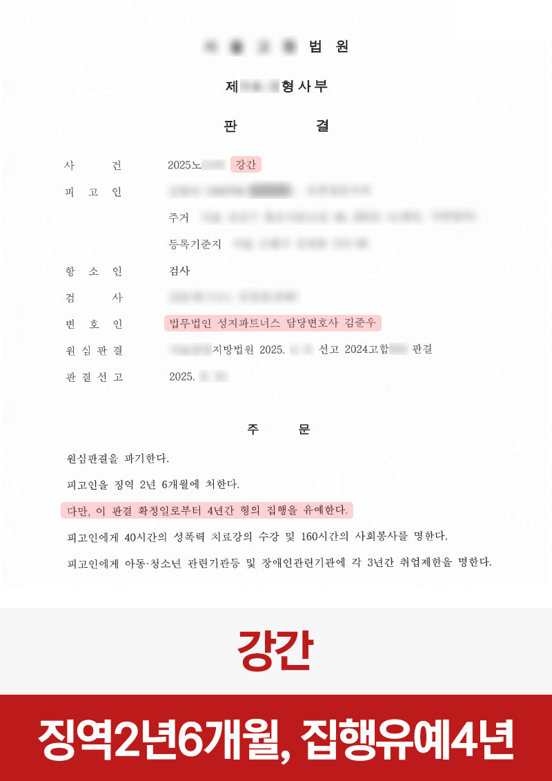 성범죄 [강간] 강간 원심파기 집행유예 4년 선고