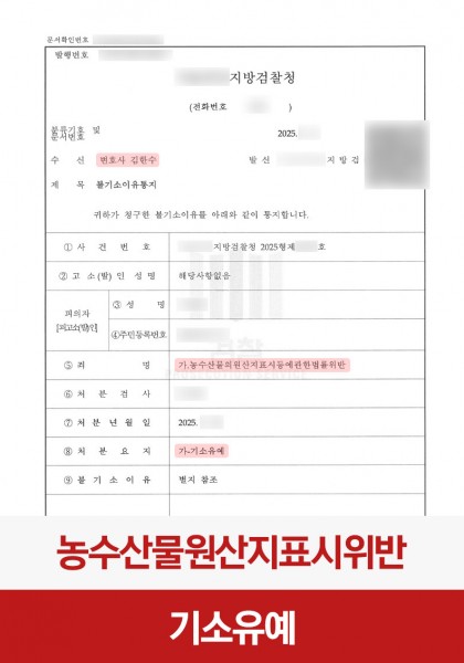 [농수산물의 원산지 표시 위반] 농수산물 원산지 표시법 위반, 기소유예 …