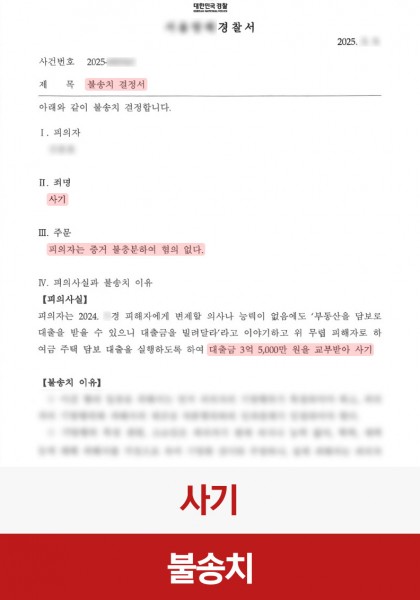 [사기] 담보를 근거로 한 대출 요구, 사기죄 불송치