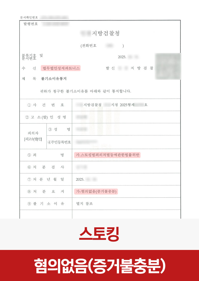 형사 [스토킹] 스토킹 범죄, 혐의없음 처분