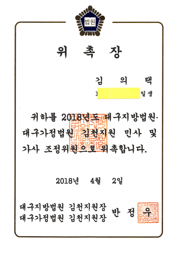 서울중앙지방법원 조기조정제도 조정위원-김의택