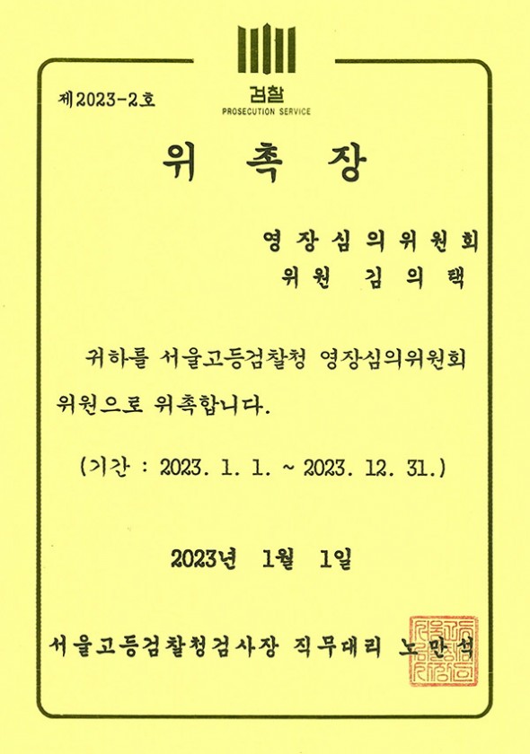 서울고등검찰청 영장심의위원회 위원-김의택