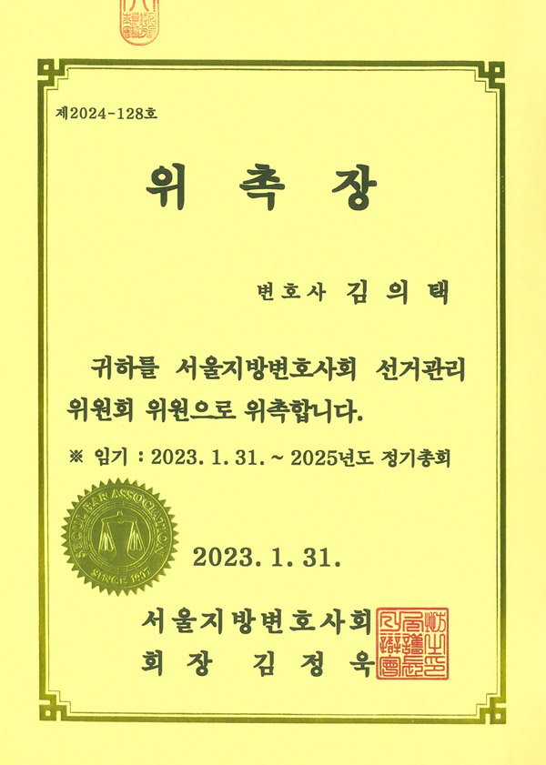 행정 관련 서울지방변호사회 선거관리위원회 위원-김의택