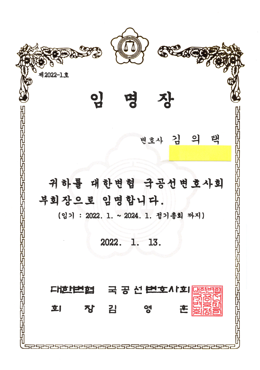 변호사 관련 국공선변호사회 부회장-김의택
