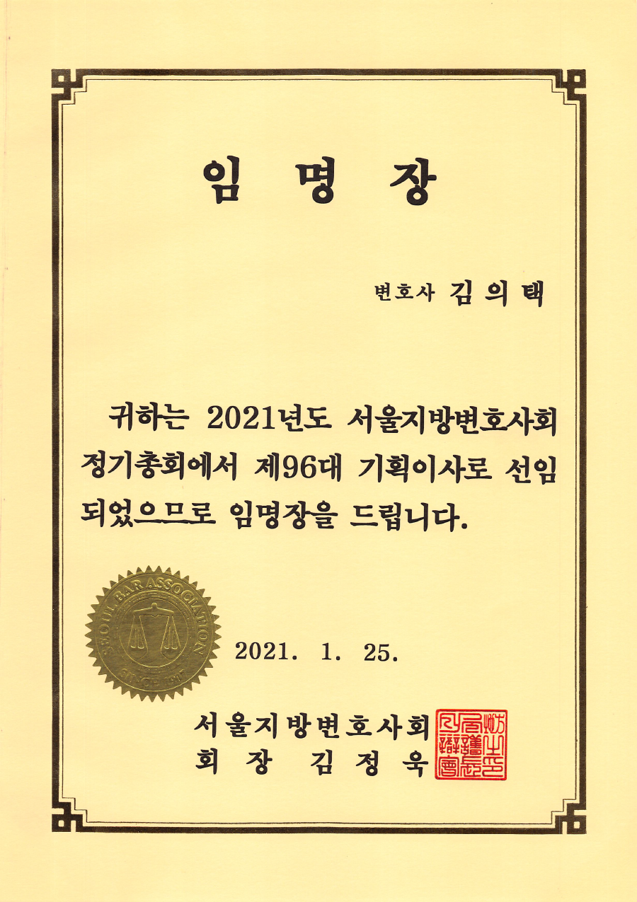 변호사 관련 서울지방변호사회-기획이사-김의택