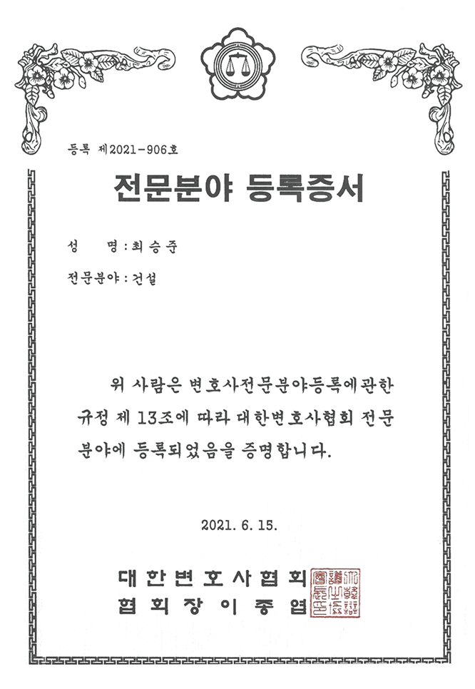 · 대한변호사협회 등록 건설 전문 변호사