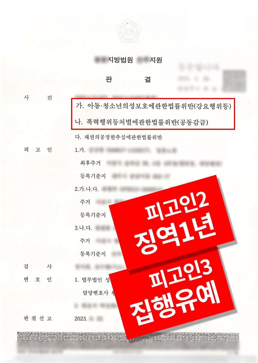 의뢰인이 B씨의 조력을 받아 피해자를 감금하였기에 공동감금죄가 성립되었습니다. 채무자가 직접 손과 발을 포박하였지만 의뢰인과 B씨가 협박 등의 유형력을 행사하였기에 불법채권추심 혐의도 성립되었습니다.