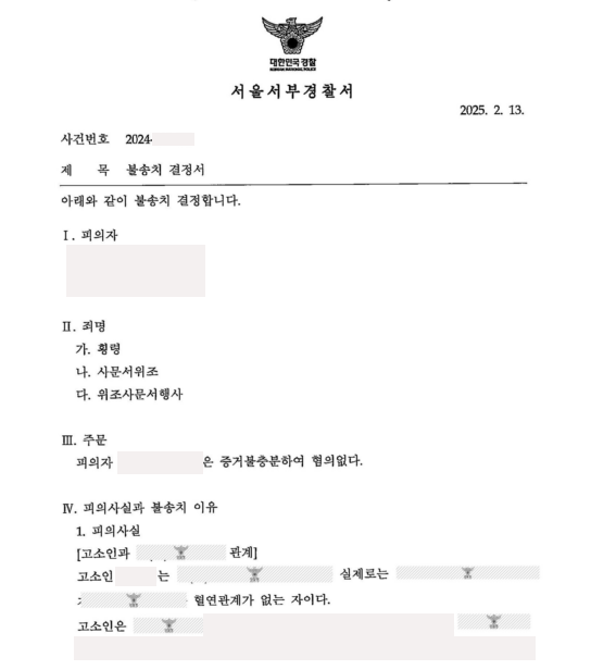 형사 [횡령/사문서위조행사] 증거불충분 혐의없음 결정