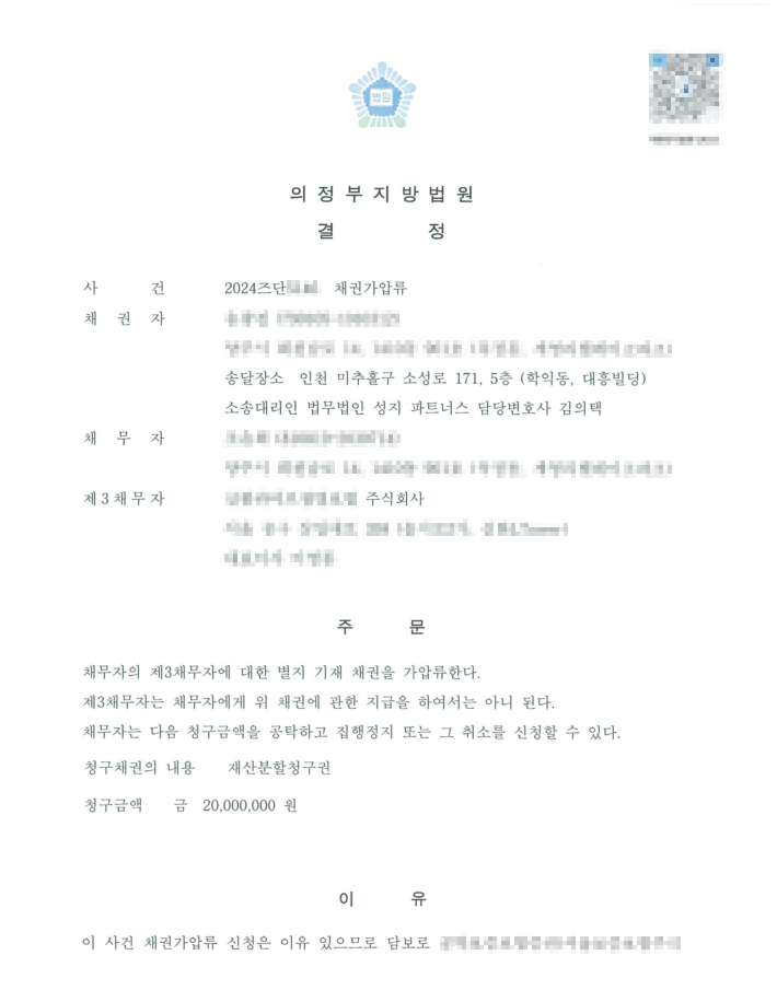 민사 [채권가압류] 재산분할을 위해 채권가압류 신청