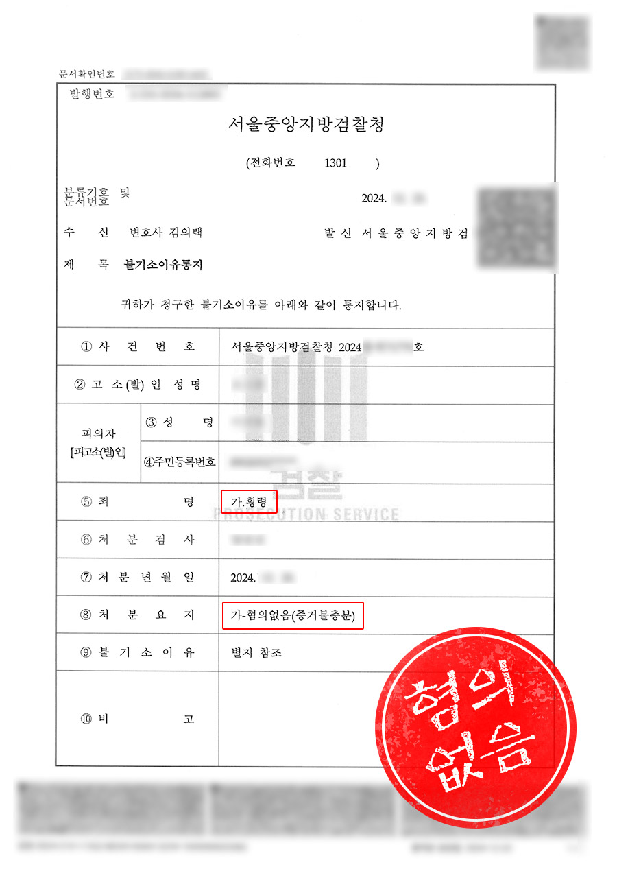 검찰은 증거 불충분하여 혐의가 없다는 불기소 처분을 내렸습니다.