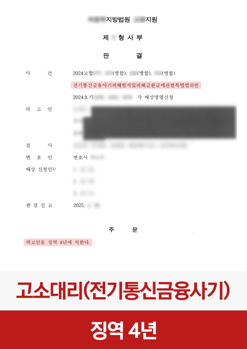 형사 [사기/고소대리] 보이스피싱, 피해자 대리하여 상대방 징역 4년 선고