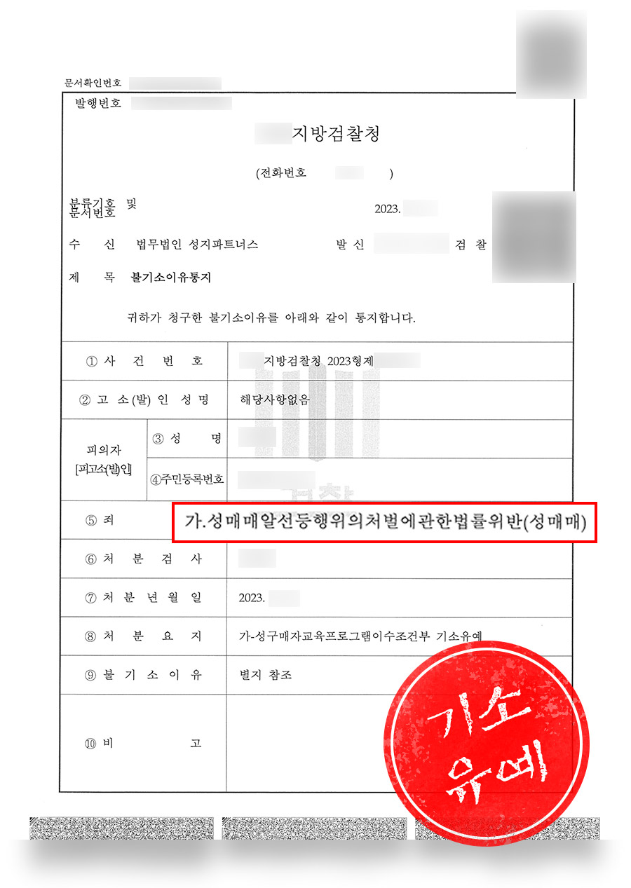 검찰은 변론 내용에 나타난 사정을 참작하여 성 구매자 교육프로그램 이수를 조건으로 불기소 처분을 내렸습니다.