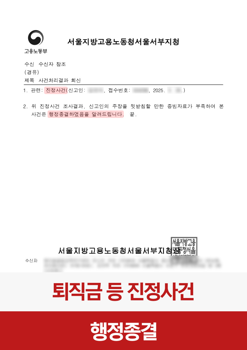 민사 퇴직금‧해고예고수당 체불 신고, 행정 종결
