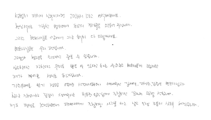저도 평생을 반성하면서 피해자에게 진심어린 사죄를 하고 남은 인생 조용이 살도록 하겠습니다.